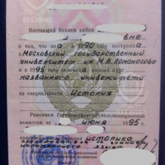 Диплом МГУ на бланке СССР 1995 года окончания